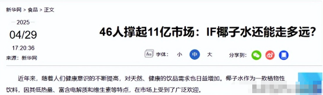新华网 2025-04-29 46人撑起11亿市场:IF椰子水还能走多远?